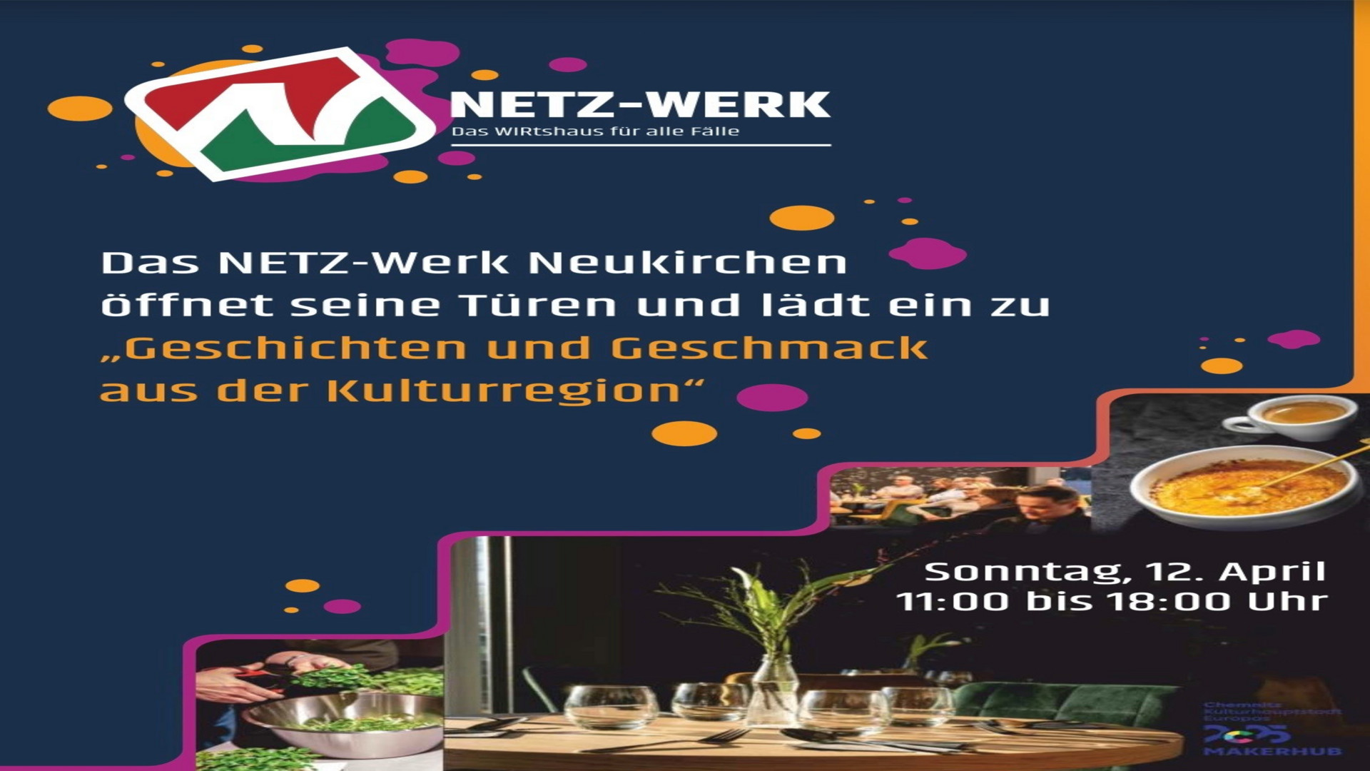 On 12 April 2026, the NETZ-Werk Neukirchen invites you to "Stories and Taste from the Cultural Region" from 11:00 to 18:00.