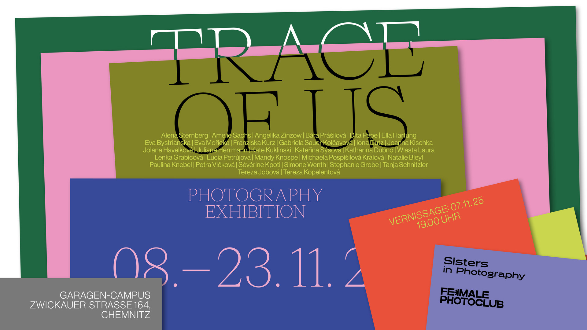 31 female photographers from Germany and the Czech Republic will present their work in the exhibition TRACE OF US at the Garage Campus Chemnitz from 8 - 23 November 2025.