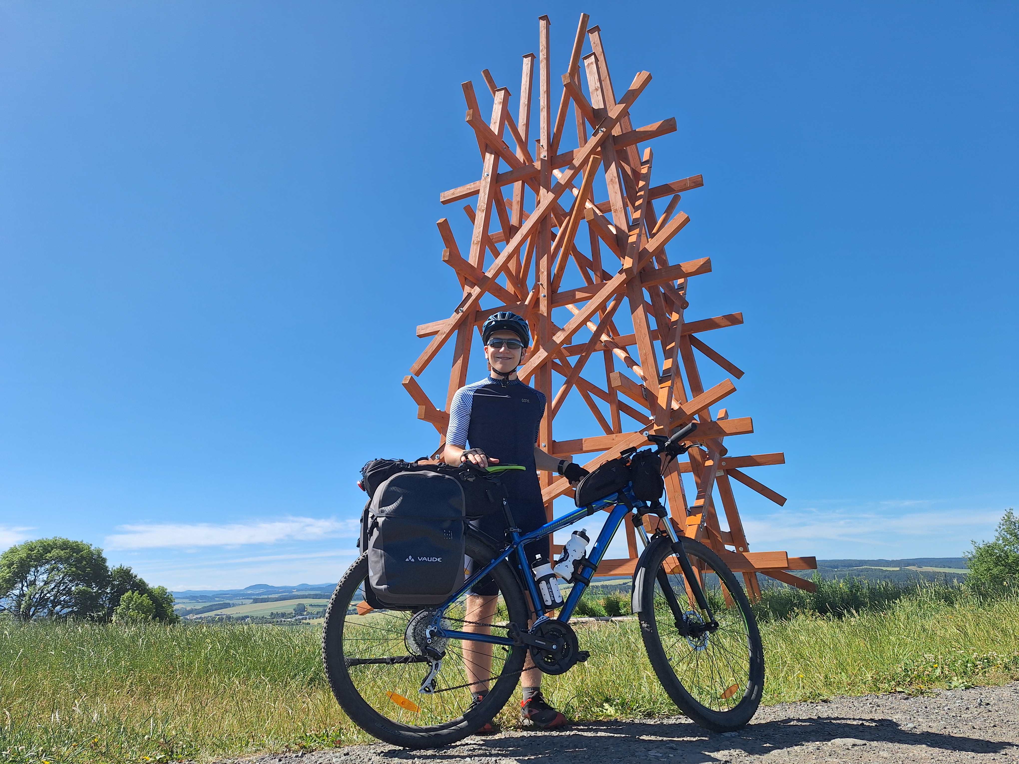 Tizian Stöckel from Amtsberg in the Ore Mountains is 16 years old and a cycling enthusiast. For a multi-day tour in the summer, he ultimately decided against a city trip and in favour of a route along the PURPLE PATH art and sculpture trail, one of the major projects of Chemnitz 2025, which connects Chemnitz and the 38 locations of the Capital of Culture region through contemporary art in public spaces. In five days, Titian cycled a total of 520 kilometres and 8300 metres in altitude. Chapeau!