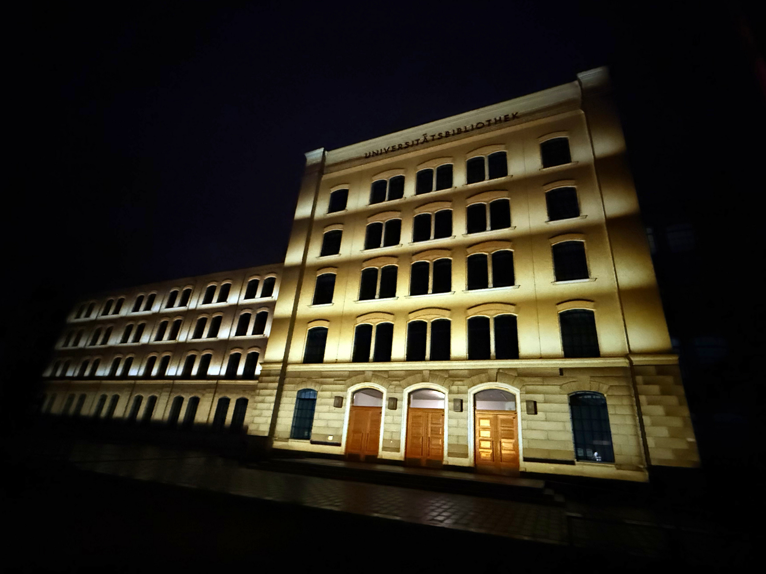 My companion for the scientific survey was very nice. Equipped with microphones and umbrellas, we started at the Karl Marx Monument, walked across Marienplatz and finally arrived at Theaterplatz. I described my impressions of the art installations and answered questions in my - I hope - witty way. I was able to enjoy the many colourful facades with background music. The hour of the interview flew by. As a small gift, I was given a delicious Printe from Aachen.