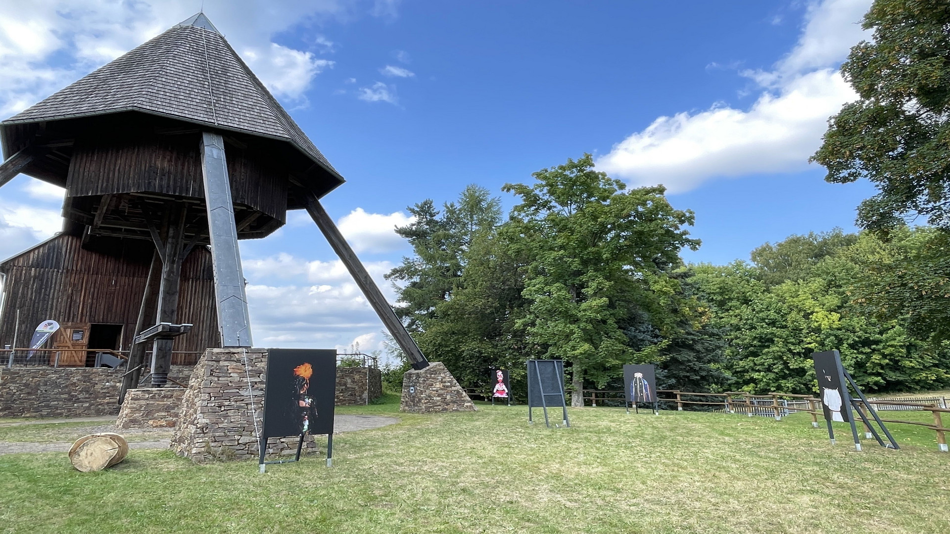 A bus tour to 4 Purple Path artworks and 3 components of the UNESCO World Heritage Erzgebirge/Krušnohoři mining region, with guided tours at the Lauta horse-drawn galley and the Saigerhütte Grünthal.