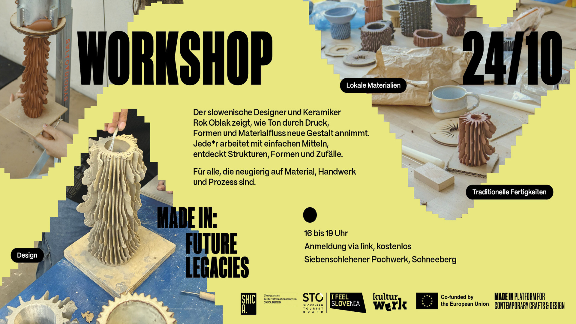 KulturWerk Schneeberg e.V. invites you to a special workshop with the Slovenian designer and ceramist Rok Oblak(Salto Dionys, Ljubljana) as part of the international exhibition MADE IN - Future Legacies.