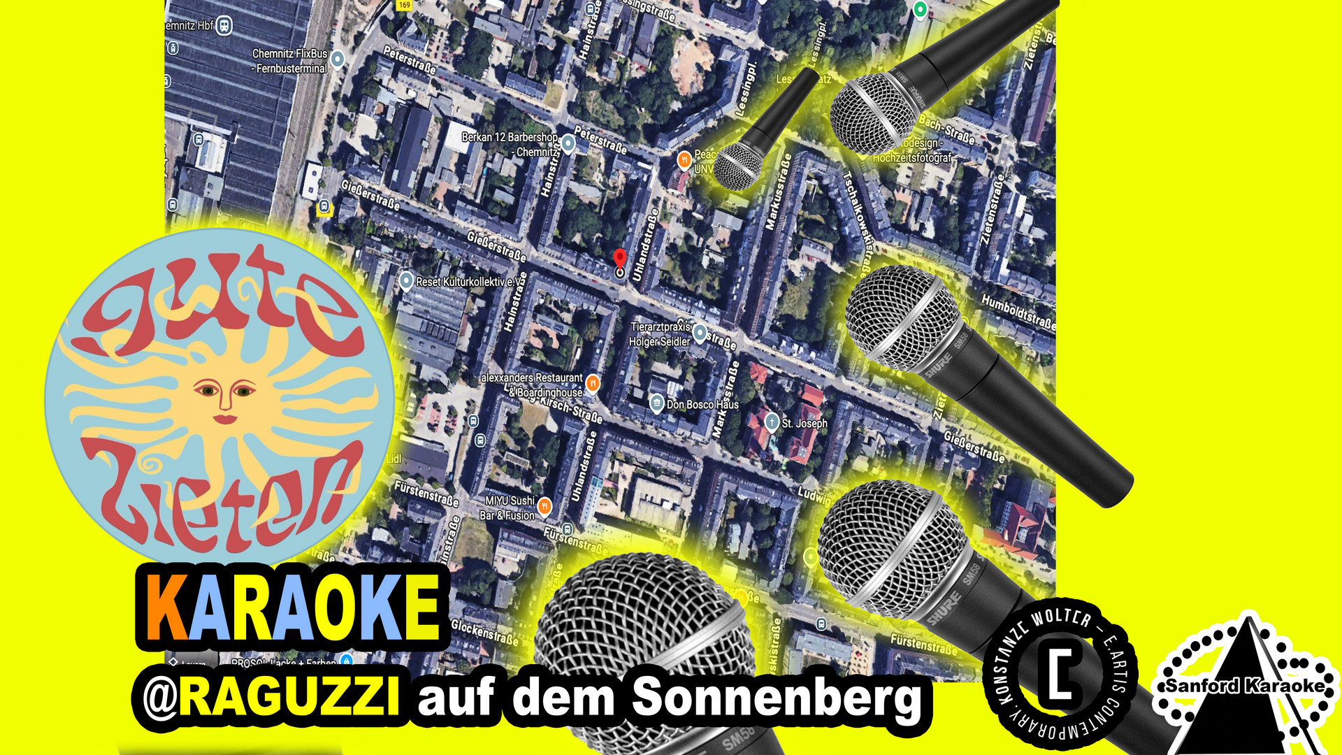 The event promises to be a unique combination of karaoke and art, with American artist Sanford Wintersberger as host to guide guests through an evening of singing. All languages and all music genres as well as specially created karaoke versions of Chemnitz music can be sung. You can find the playlist for warm-up singing on Spotify: