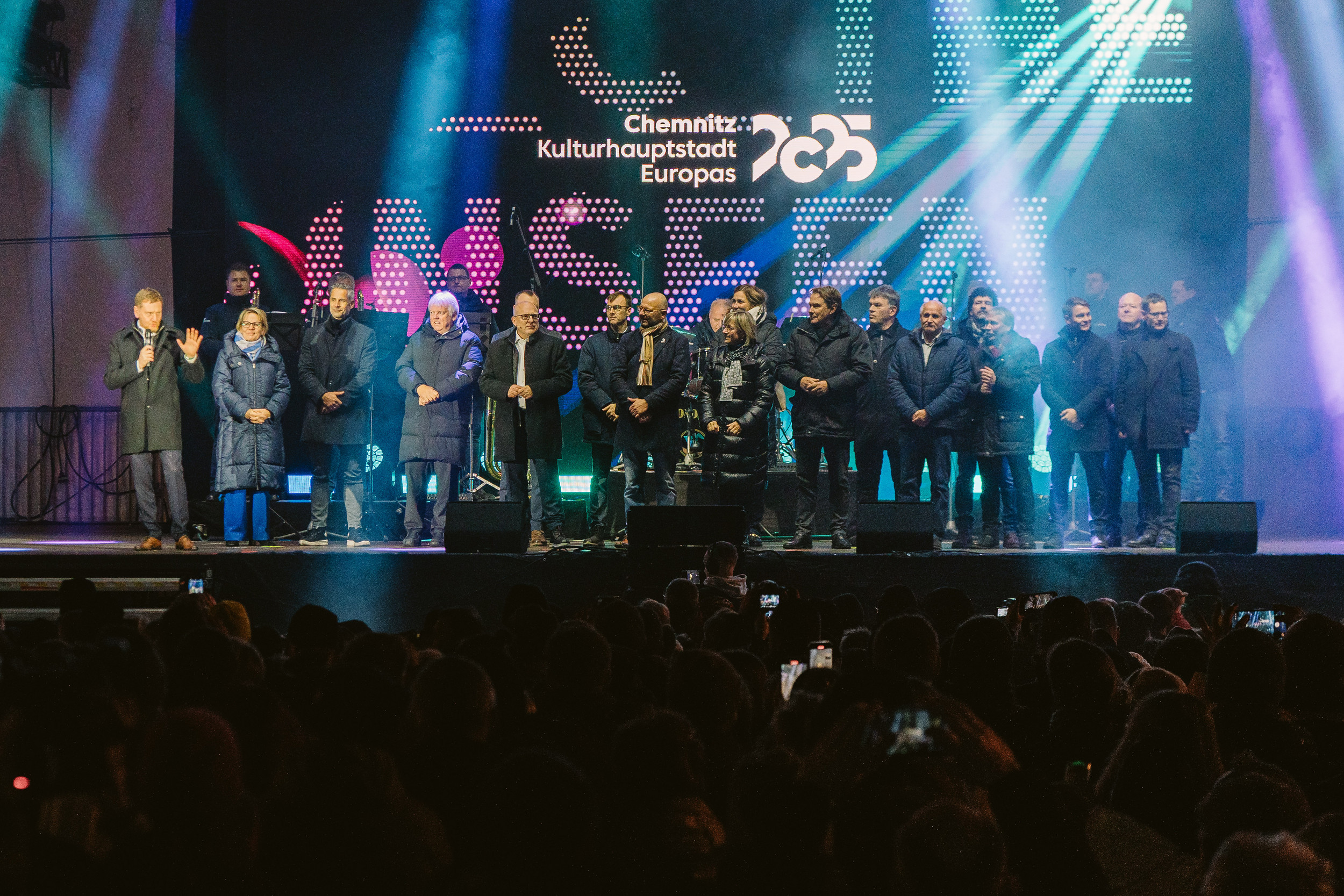 Nach 315 Tagen Programm in Chemnitz und in der Kulturhauptstadtregion blickten die Geschäftsführenden von Chemnitz 2025, Andrea Pier und Stefan Schmidtke zurück und bedankten sich bei den unzähligen Menschen, die dieses unvergessliche Jahr gemeinsam gestaltet haben. Auch Sachsens Ministerpräsident Michael Kretschmer und der Chemnitzer Oberbürgermeister Sven Schulze nutzten am Abend die große Bühne auf der Brückenstraße, um ihren Dank an all diejenigen zu richten, die das Motto des Kulturhauptstadtjahres „C the Unseen“ mit Leben gefüllt haben. Chemnitz 2025 hatte mehr als 2 Millionen Besucher:innen, Gäste und Teilnehmer:innen und bot von Mitte Januar bis Ende November über 2.000 Veranstaltungen in der Stadt und der Region.