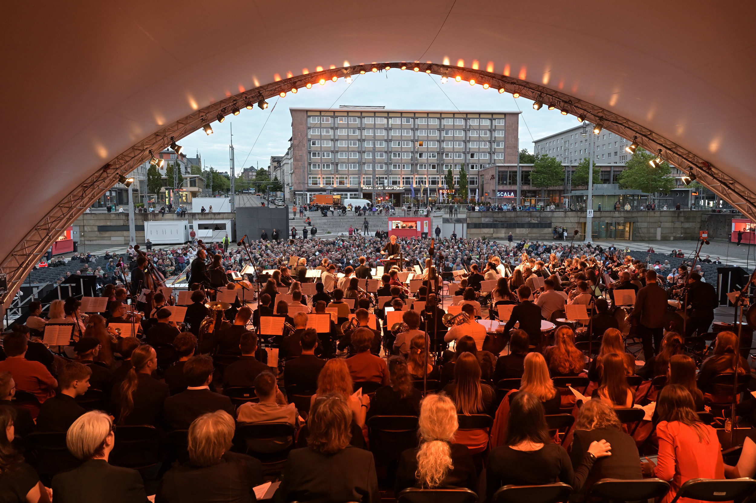 Zur Europäischen Sommerphilharmonie und -Chor lud die Sächsische Mozart-Gesellschaft e.V. begeisterte Sänger:innen und Instrumentalist:innen aus Deutschland, Polen, Tschechien, Italien, der Ukraine und Österreich zu einem besonderen Tango-Konzert ein. Im Kulturhauptstadtjahr würdigten sie alle die Stadt Chemnitz als Wiege des Bandoneons. Durch Carl Friedrich Uhligs Erfindung der Concertina im Jahr 1834 in Chemnitz begann der Siegeszug des Bandoneons als charakteristisches Instrument des Tango Argentino. Angeführt wurden die Laien und Profis vom Oktett des Gran Orquesta Carambolage um Tango-Legende Jürgen Karthe, das mit allein zehn Bandoneons eine einmalige Besetzung hatte. Diese Bandoneon-Reihe bildete das Glanzstück des Orchesters und verlieh dem Tango seine Seele. Das Konzert erlebte am Folgetag im tschechischen Chomutov eine zweite Auflage.