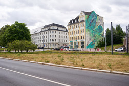 Hallenkunst hinterlässt großformatige künstlerische Eindrücke im Stadtbild – eine bleibende Erinnerung an das Kulturhauptstadtjahr. Internationale Künstler:innen, die ihre Werke auf der Hallenkunst-Ausstellung zeigen, haben sich an Chemitzer Häuserfassaden mit riesigen Murals (Wandmalereien) verewigt.
