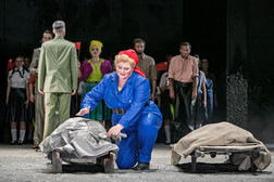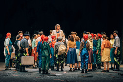 Die Oper beschreibt eine Gesellschaft, in der es keine Bubbles gibt. Jede und jeder hat eigenes emotionales Gepäck, eigene Potentiale und eigene Ideen, wie man das Leben angeht. Die eine oder der andere träumt vom persönlichen Glück, andere von einer neuen Gesellschaft, eine dritte Person findet, man lebe schon im bestmöglichen System. Sie alle müs- sen nicht nur mit sich und ihren Mitmenschen klarkommen, sondern auch mit den widrigen Bedingungen des Staats, in dem sie leben.