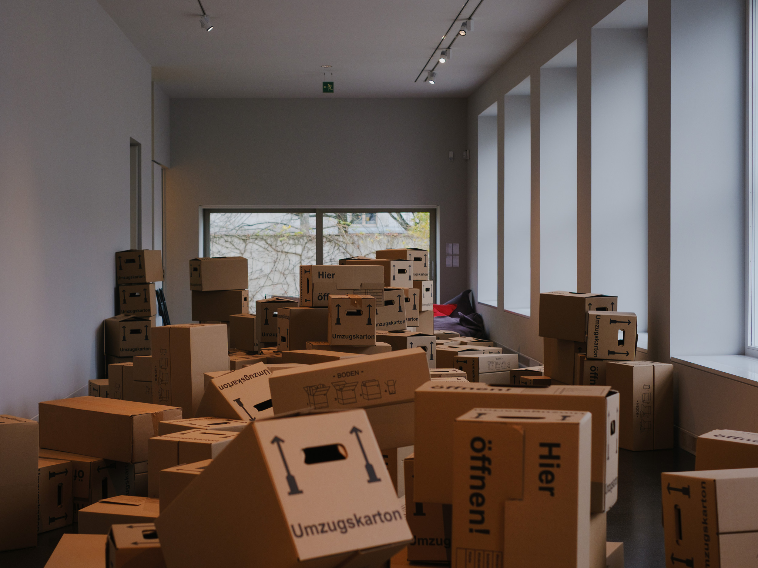 Moving Boxes (dt. Umzugskartons) war eine Installation mit den Umzugskartons der Museumsbesucher:innen. Sie konnten ihre gebrauchten Umzugskartons im Museum Gunzenhauser abgeben. Im Vordergrund stand nicht der leere Umzugskarton, sondern die Geschichten und Erinnerungen, die der Gegenstand mit sich brachte. Die Installation wurde im Erdgeschoss des Museums gezeigt und lud dazu ein, die Kisten in immer neuen Konstellationen anzuordnen und neu zu arrangieren.