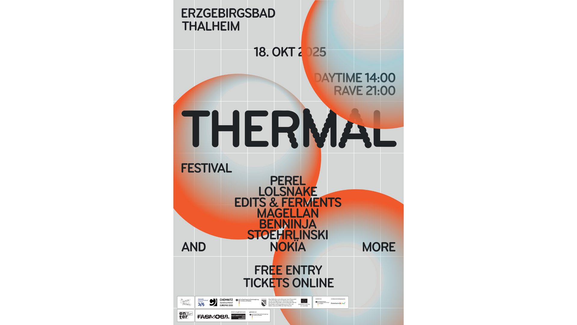 Das Thermal Festival findet im Rahmen des Betonblühen Festivals statt und bietet Workshops, ein abwechslungsreiches Tagesprogramm für die ganze Familie und einen Rave an.
